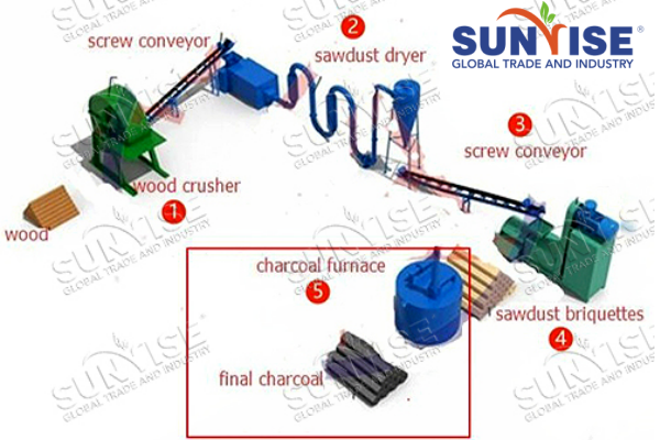 To convert sawdust briquettes into charcoal briquettes, a carbonization process is necessary. This involves heating the briquettes in a controlled, oxygen-deprived environment to remove volatile substances. Carbonization kilns, such as continuous or batch-type retorts, facilitate this transformation by maintaining the desired temperature and atmosphere. The result is a high-carbon, energy-dense charcoal briquette suitable for various heating applications.